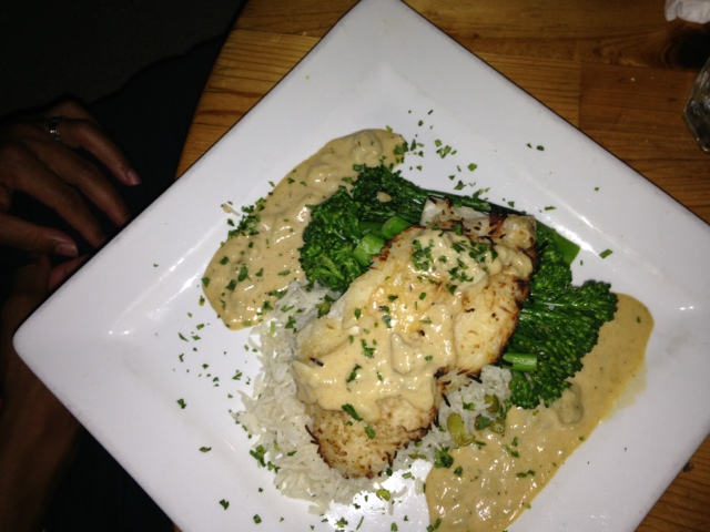 He ordered the coconut crusted grouper with fresh veggies and old bay cream sauce, while I had the grouper ceviche. They were both fantastic...nothing like fresh fish. It was just what we wanted.